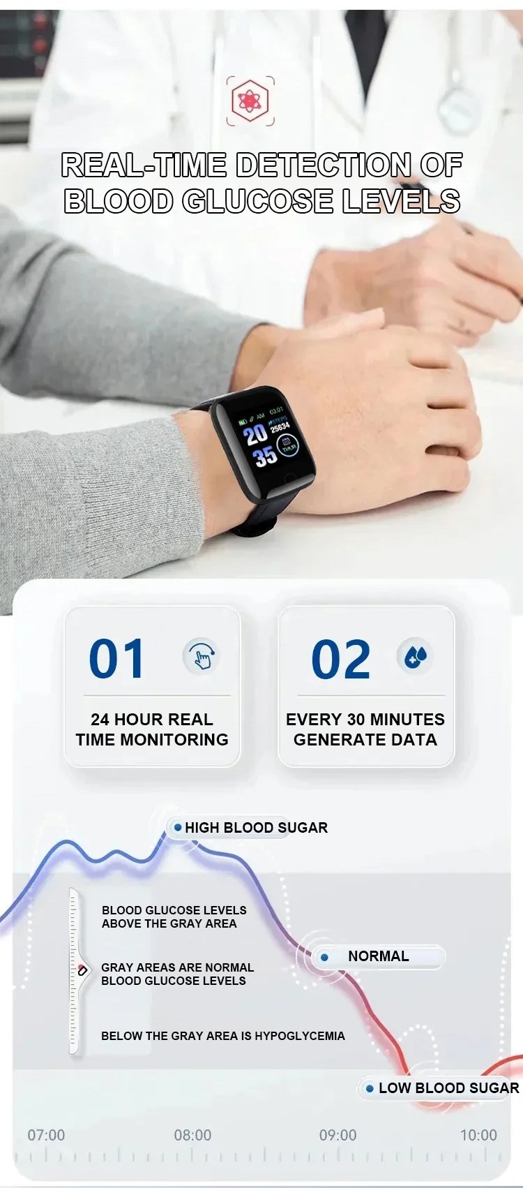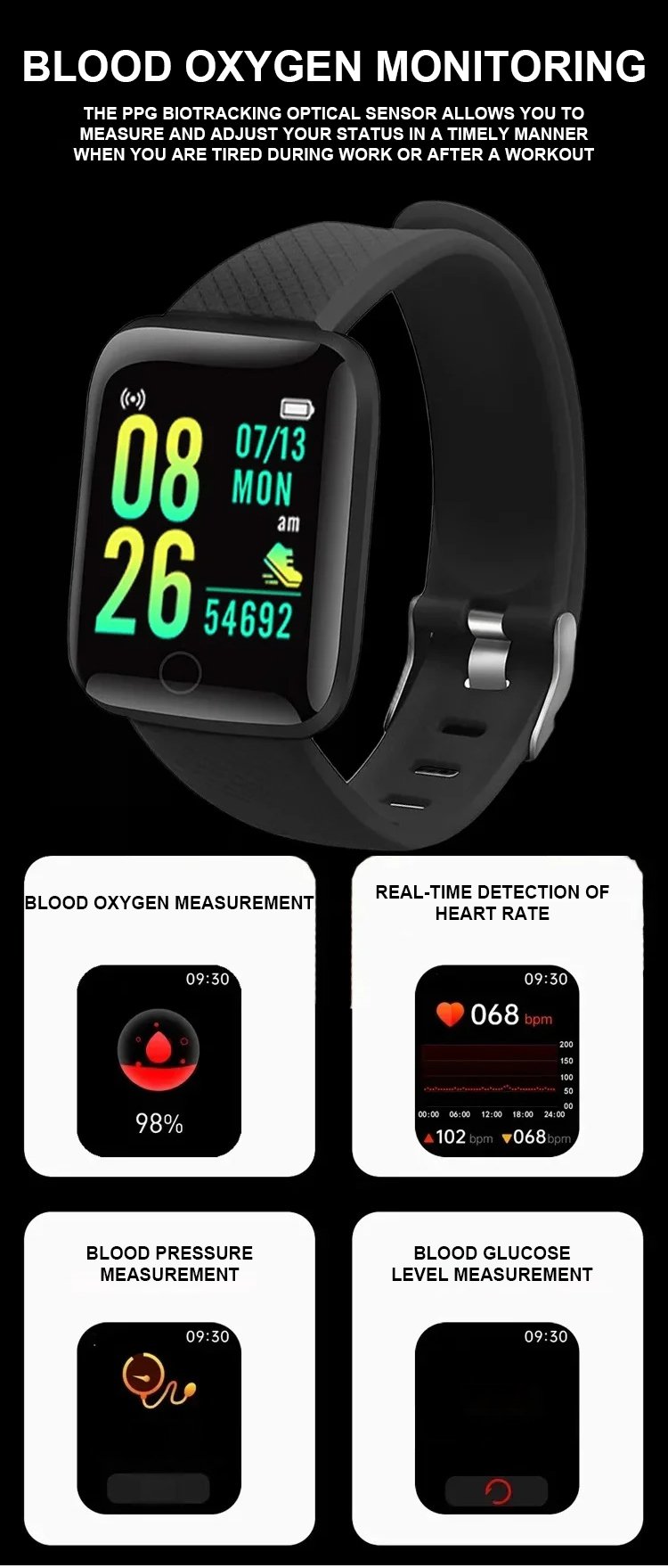 Bluetooth sports watch [All-day monitoring of heart rate and blood pressure].